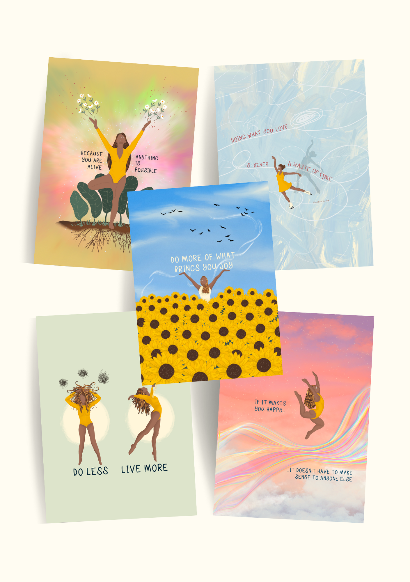 Joy Set is a gentle invitation to slow down, cherish the present, and lean into what makes your heart feel alive. The mini print cards in this set are reminders to savor joy in the simple things, to make space for what truly matters, and to let life’s beauty unfold with ease. Each card carries a spark of encouragement to live with intention, lightness, and delight.