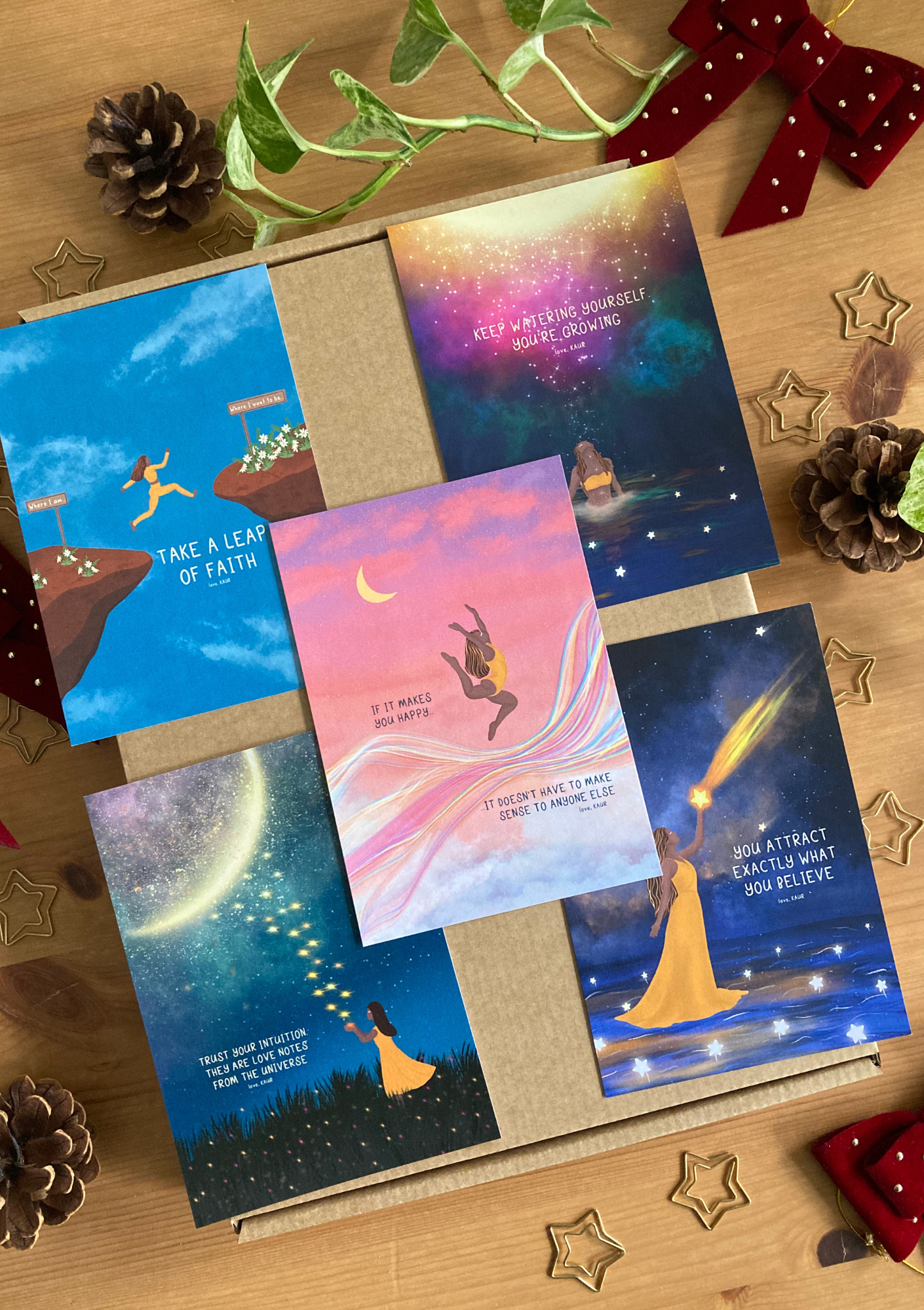 ✨ 5 × Postcards – Little notes of encouragement to share, display, or carry with you.